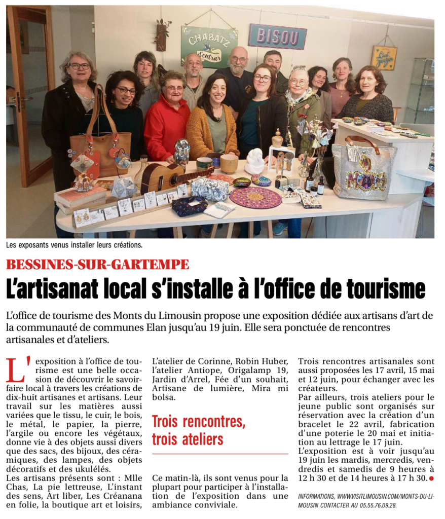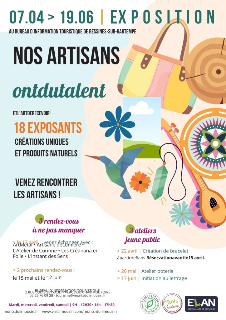 Pour la 2ᵉ année consécutive, l’Office de Tourisme des Monts du Limousin met à l’honneur 18 artisanes et artisans locaux du territoire ELAN.